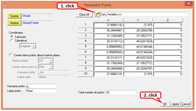 Use a .csv file containing x, y, and z coordinates of points to create a Curve Entity.