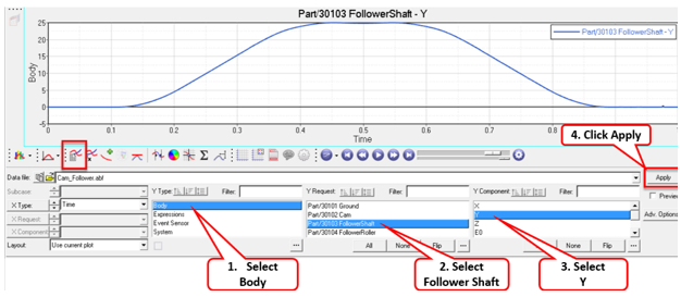 Review the MotionSolve simulation summary using HyperView and HyperGraph.
