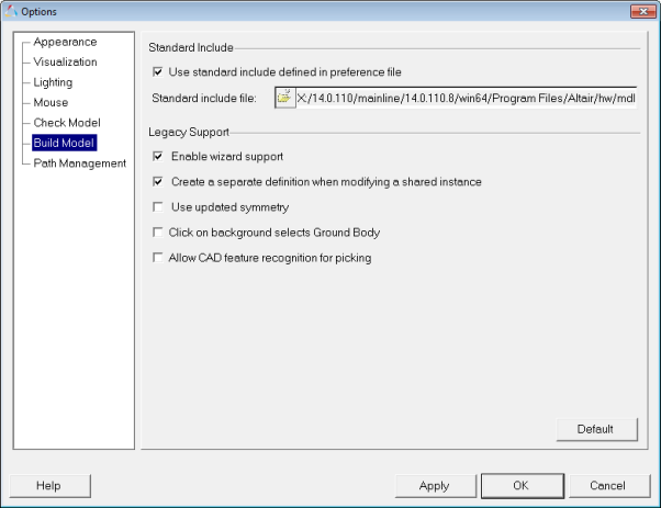 In the Options dialog, click Build Model