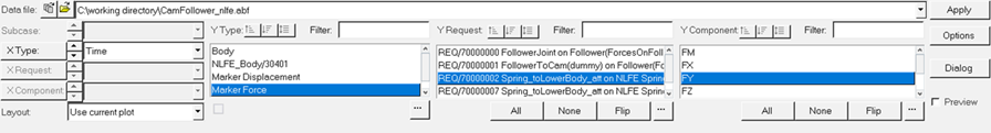Figure 29. Plot selections – Spring force on follower: NLFE spring