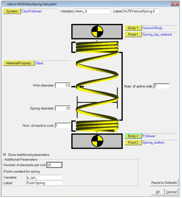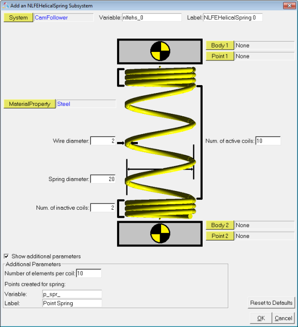In the Add an NLFEHelicalSpring Subsystem dialog, assign