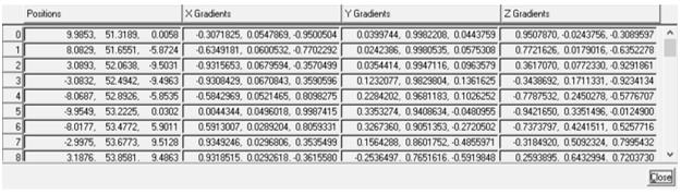 Figure 20. Pre-loaded positions and gradients imported from the .csv