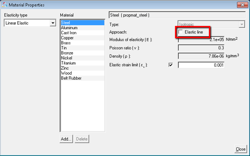 The Elastic Line check box is selected by default for the Steel material. Figure 23.
