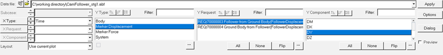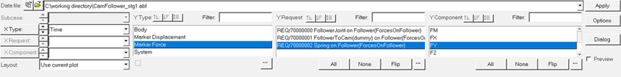 Figure 28. Plot selections – Spring force on follower: regular spring