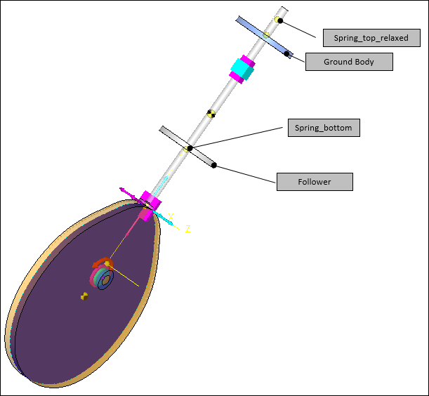 A Cam, Follower, Joints, Graphics, and a Spring which make the complete
