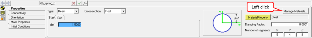 In the Subsystems toolbar, click (NLFE Helical Spring Subsystem).