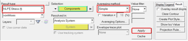 Note: You can also view Displacement, Strain, etc. for an NLFE body in HyperView. All FE contours and types are available