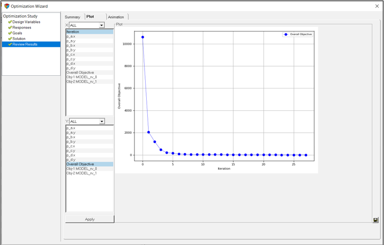 In this step, you will use a powerful feature in MotionSolve to obtain the optimal design by recovering from a failed