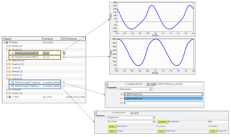 optimized to obtain a desired motion of the coupler. MotionSolve's DSA (Design Sensitivity Analysis)