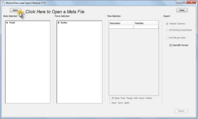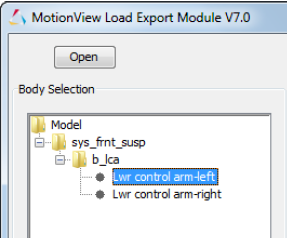 - To use this utility, specify the components in the MotionSolve model for which loads are to be processed. You can do this by doing one