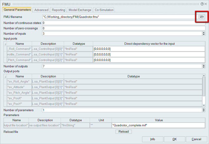 and select the FMU exported from