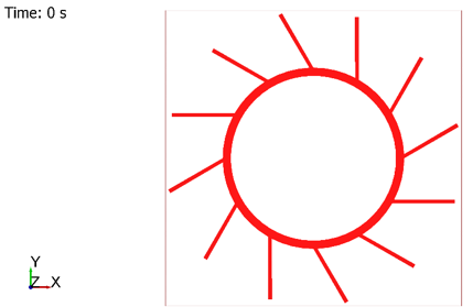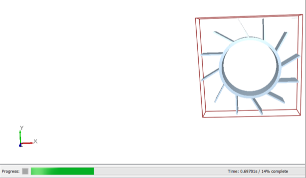 - The problem consists of a wheel, that can only rotate around its center. A number of particles is impinged on the wheel blades, causing it to rotate. The wheel is modeled in MotionSolve, while the particles and its interaction with the wheel is modeled in EDEM. A rigid Wheel to particle interaction is set up first. The wheel is later replaced with a flexible body to show flexible body to particle interaction.