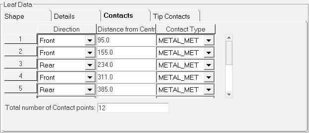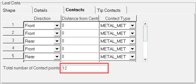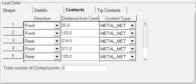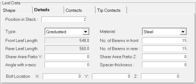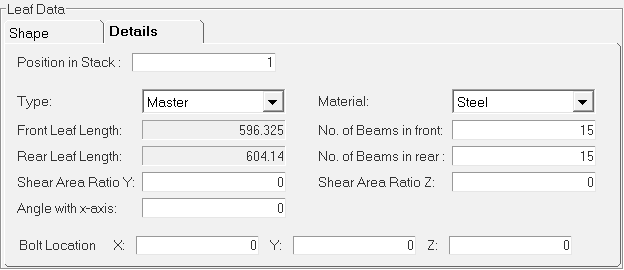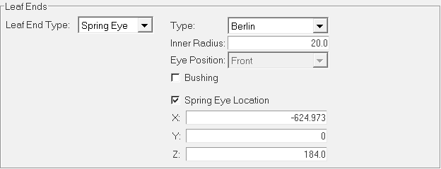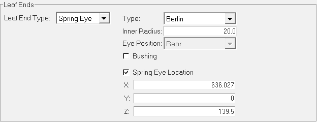 Leaf ends parameters provide the details about the eye hook types at front and at the rear ends. Three spring eye types are supported.