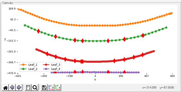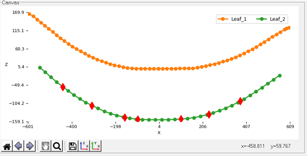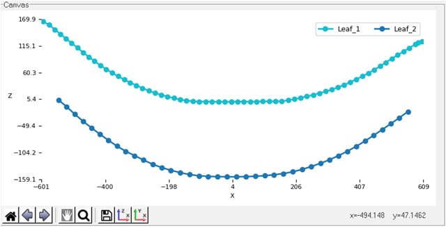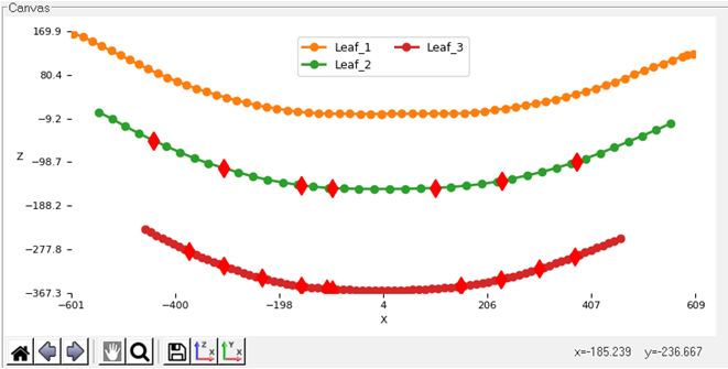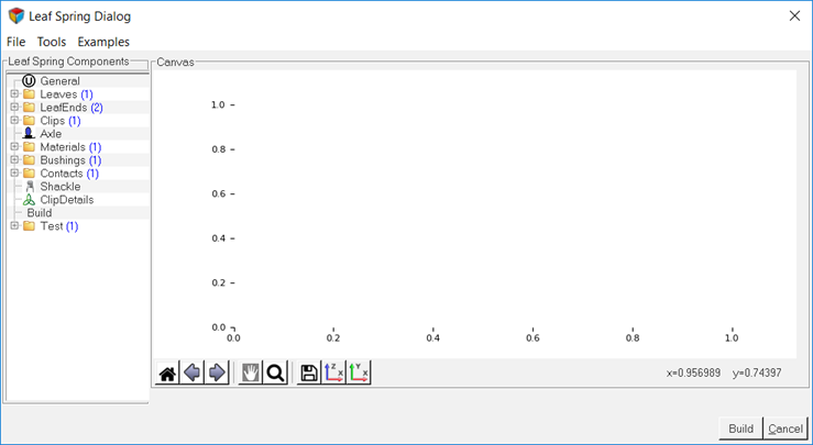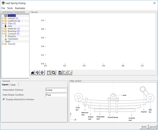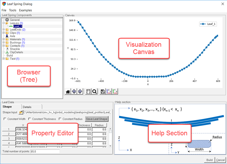 - Visualization Canvas: Used for viewing leaf shapes. When you select data in the browser the leaf spring builder displays the corresponding editor, visualization canvas and help section.