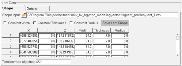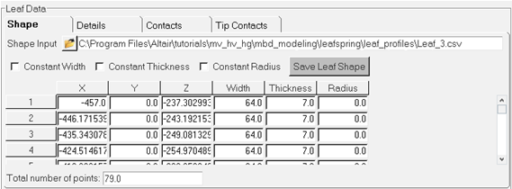 The .csv files used in this tutorial contain coordinate pairs that represent the geometry of the centerline of the leaf. The leaf in this tutorial was created by measuring geometry from a light truck rear suspension. The rear suspension in this example has a GAWR of 3950 lbs.