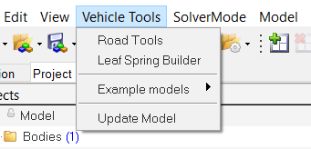 To build a leaf spring model, you must first load the MBD-Vehicle Dynamics Tools preference file in MotionView. Once loaded, HyperWorks remembers and automatically loads the MBD-Vehicle Dynamics Tools preference file each time you start HyperWorks.