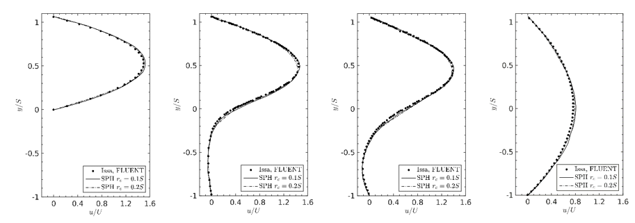 simulations show very good agreement with the reference profiles by Issa. 2 Figure 3. Velocity Profiles at the Reference Positions P1 to P4 (from