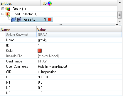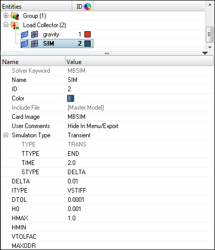 In this step you will create the gravity force that applies to the model and MBSIM Bulk Data card, which is to specify the parameter for multibody simulation.