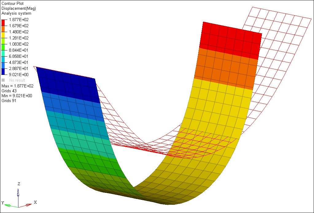 Figure 2. Linear Subcase Solution with Nonlinear Large Displacement Subcase as Preload for Model A