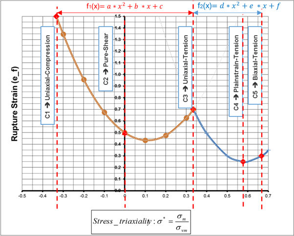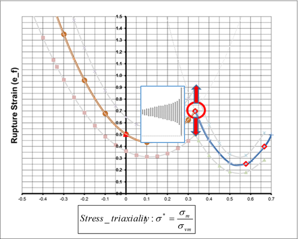 failure plastic strain versus stress triaxiality (state of stress). This allows for the