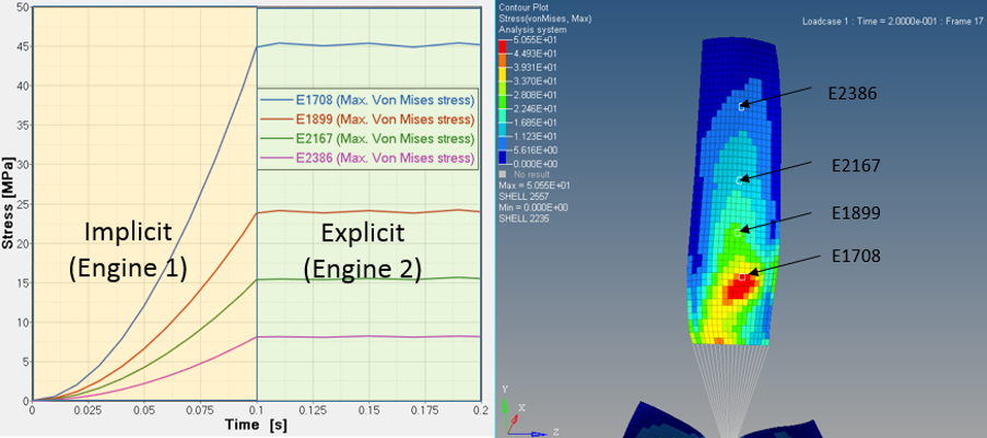 Implicit analysis will be stopped if DT_min=0.01e-4, and once DT_max=0.03 is reached, computation will continue with this maximum time step. | |