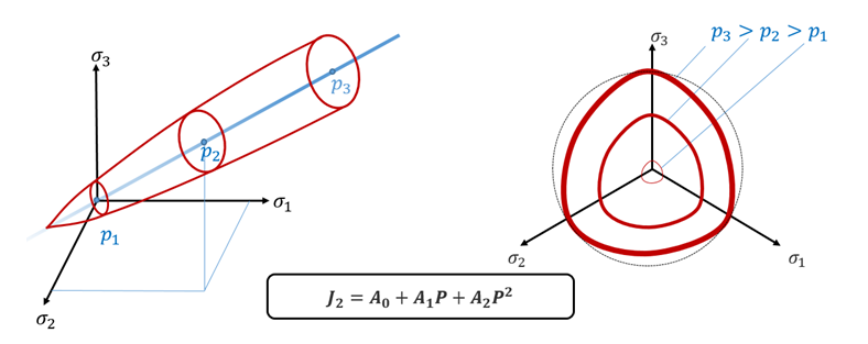 Figure 2. Extended Drücker-Prager Yield Criteria Implemented in Radioss - Extended Drücker-Prager