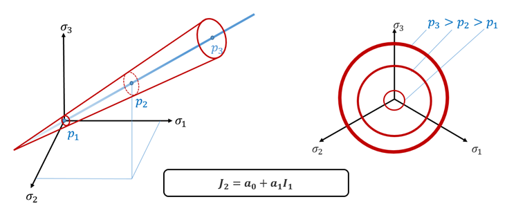 Figure 1. Original Drücker-Prager Yield CriteriaRadioss is using the extended Drücker-Prager yield criteria whose pressure dependency is nonlinear.