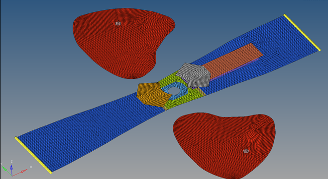 This method lists reference geometry using the node ID and reference coordinates. The node IDs must match the node ID listed in the assembled (folded) airbag. One /XREF is created per part. If the reference geometry parts of the airbag are not connected as shown in Figure 1, then the same nodes are listed in multiple /XREF in areas where the parts connect. This method is not as flexible as /EREF due to the requirement of the node ID matching the assembled (folded) airbag.