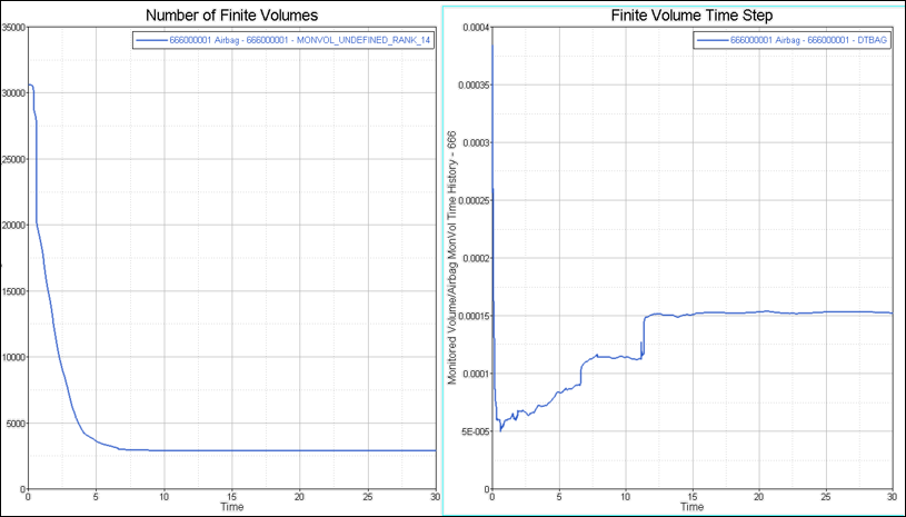 FVM airbag should be run standalone to verify correct deployment behavior and airbag characteristics. The FV merging parameters and time step control can be modified to reduce simulation time while still providing realistic results.