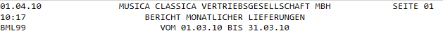 Die meisten Berichte haben ein Seitenvorschubzeichen (Zeichencode 12), das an jedem Seitenende eingebettet ist. Die Seitenumbrüche werden auf dem Bildschirm durch eine horizontal gestrichelte Linie angezeigt. Sofern der Bericht Seitenvorschubzeichen enthält, kann Monarch Classic die Okkurrenz des Seitenumbruchs dazu benutzen, den Anfang der einzelnen Kopfzeilen zu identifizieren. In diesem Fall brauchen Sie keinen Selektor zu erstellen.