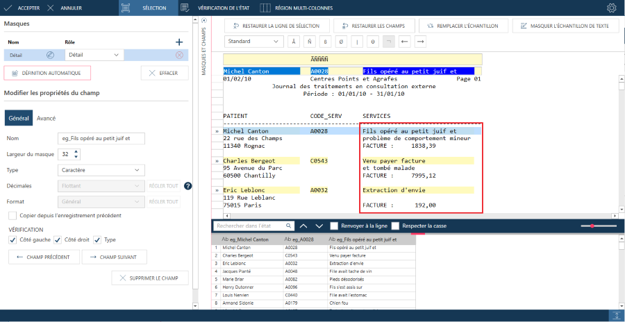 À l'aide de la barre de défilement vertical, examinez une partie suffisante de l'état pour vous assurer que la définition du champ a bien capturé toutes les instances du champ multiligne.