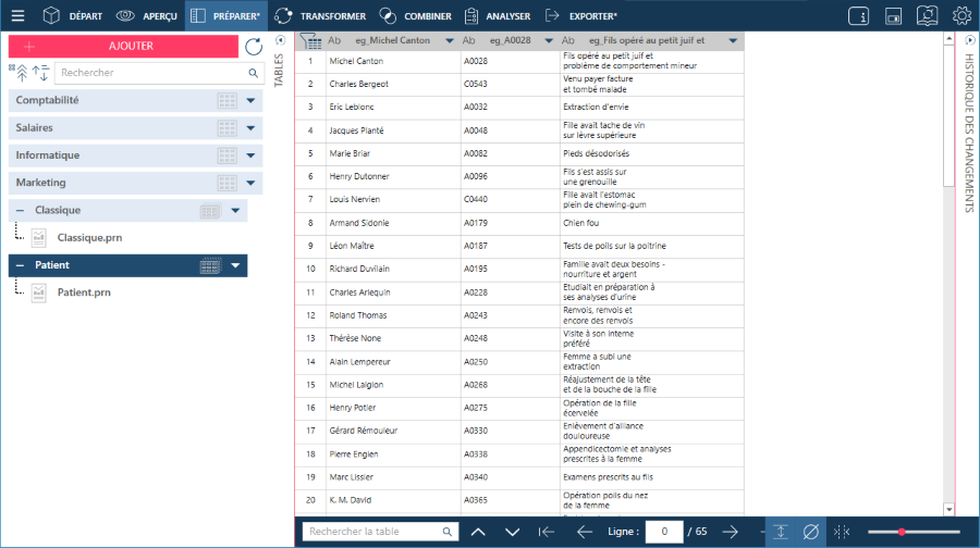 Les données s’affichent dans un tableau dans la fenêtre Préparer.