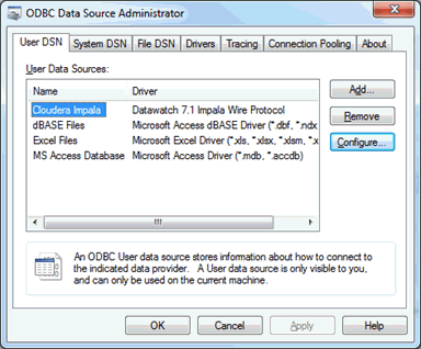 Select Start > Control Panel > Administrative Tools > Data Sources (ODBC).