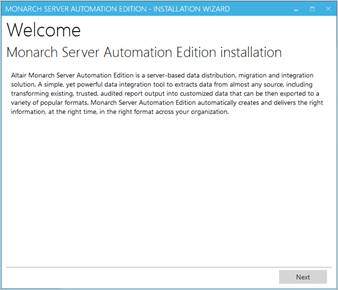 1. In the directory with installation files, double-click MonarchAutomatorInstaller.exe to launch the Monarch Server Installation Wizard.