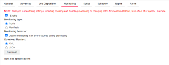· Choose Inputs if the file to be monitored is an input file. Proceed to Step 6.