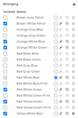 The new diverging numeric color palette is added in the list and can be deleted (e.g., Yellow-White-Red).