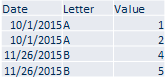 The expected pivot is achieved as there is only one row per unique date, and the Letter and values columns are summed up.
