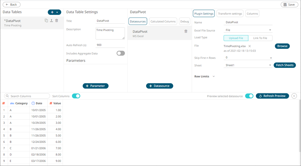 The column named Category will be used as the Measure (pivot) column, and value column (Value) is the one you will aggregate.