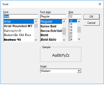 Font - Click Change to display the Font dialog where you can set the Font Type, Style, Size, and Script.