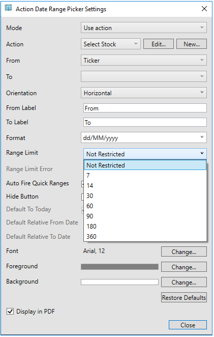 Set the Range Limit of the dates by selecting the number of days. By default, the range limit is Not Restricted.