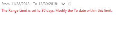 For example: “The Range Limit is set to 30 days. Modify the To date within this limit.”