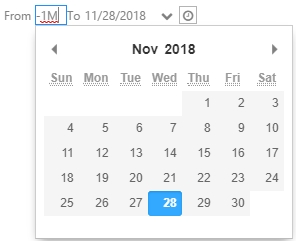 The recalculated relative date will back 1 month from today (e.g., October 28):