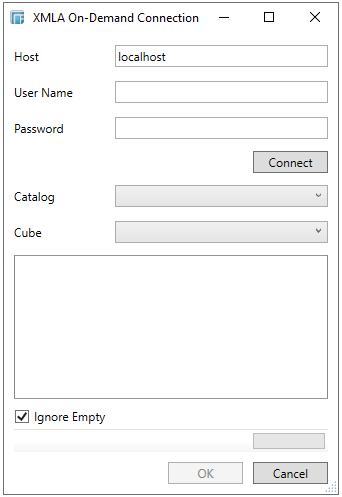 Provide the Host name, User name, and Password required to connect to the XMLA On-Demand database you wish to access.
