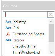You can also enter one or more characters/alphabets into the Search Columns box and the suggested list of columns that matched the entries will be displayed.
