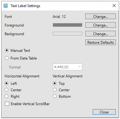 Enable Vertical Scroll Bar - Check the box to enable vertical scrolling through a long text label