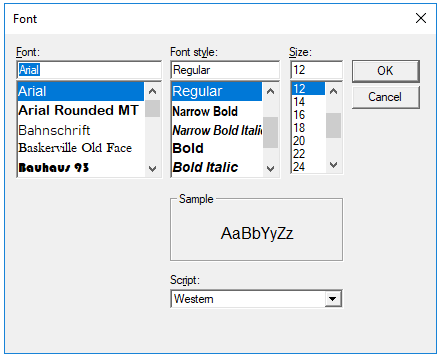 Font - Click Change to display the Font dialog where you can set the Font Type, Style, Size, and Script.