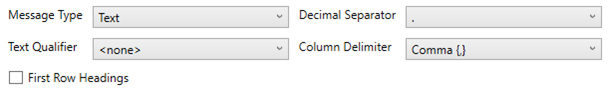 If Text is selected, confirm the Decimal Separator, Text Qualifier, Column Delimiter, and if the first row of the message include column headings.