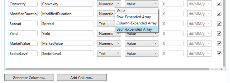 To use the Bson-wise expansion feature, select Bson-Expanded Array in the Structure drop-down box.