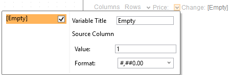 Clicking on the [Empty] value highlights this section and currently displays as the associated value of the Change variable. By default, the value is set to 1.