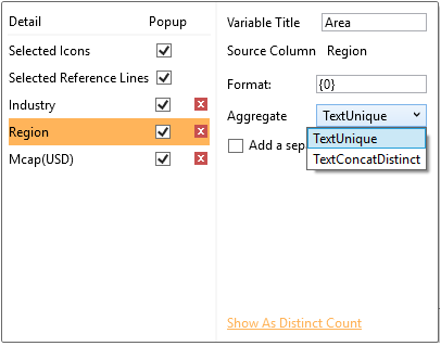 select the text aggregate: TextUnique or TextConcatDistinct